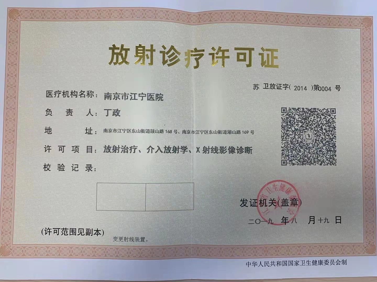 放射诊疗许可证